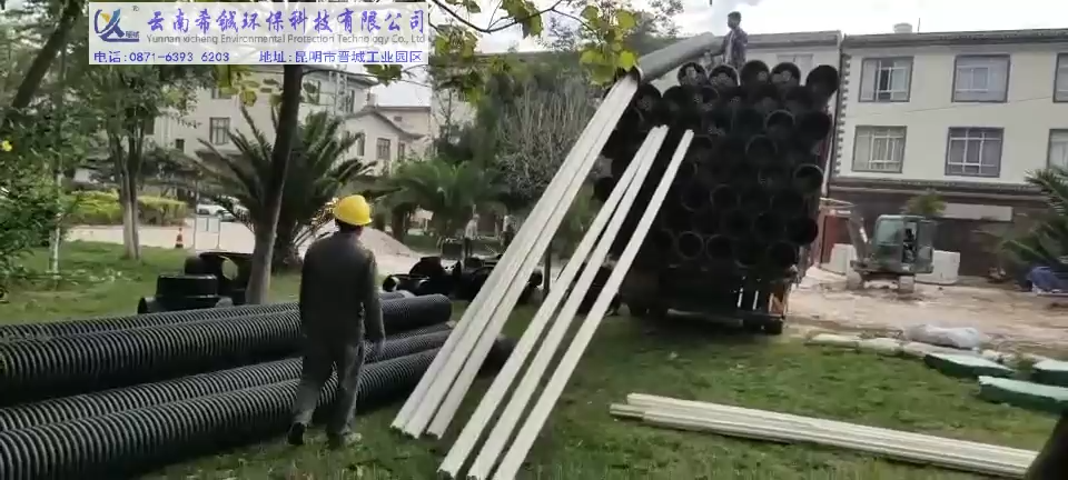 采用規格:HDPE雙壁波紋管、塑料檢查井、七孔通信管、PE給水管客戶工地位置:曲靖云南